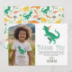 Envía un agradecimiento rugiente con esta tarjeta de cumpleaños con tema de dinosaurios que presenta un mensaje divertido y audaz en letras mayúsculas y un espacio especial para agregar la foto de tu hijo. Perfecta para niños de 5 años, esta tarjeta hace que sea fácil agradecer a los amigos por venir y a sus regalos dino-mite con un toque personal. ¡Genial para cualquier celebración de fiesta con tema de dinosaurios!