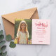 Una tarjeta de agradecimiento de cumpleaños con foto. Fondo rosa. Decorada con un lazo rosa grande. Personalice y agregue su foto y nota de agradecimiento.