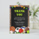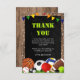 Tarjeta De Agradecimiento Cumpleaños infantil con tema de deportes rústicos