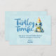 Este diseño adorable presenta una encantadora tortuga bebé azul y verde con un sombrero de fiesta, sobre un fondo sereno de acuarela azul. Perfecto para niños y niñas, estas tarjetas de agradecimiento coinciden perfectamente con nuestras invitaciones de tortuga en acuarela.