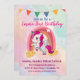Tarjeta De Agradecimiento Cumpleaños Mágico Unicornios Acuarela Rosa 1er