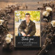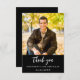 Una tarjeta de agradecimiento de cumpleaños con foto. Fondo negro, texto blanco. Personaliza y agrega tu foto y nota de agradecimiento.
