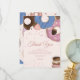 Agrega un toque de dulzura a tu gratitud con esta encantadora tarjeta de “Gracias” que presenta donas coloridas y fresas cubiertas de chocolate. Perfecta para expresar aprecio en cumpleaños, baby showers, despedidas de soltera o cualquier celebración dulce. El fondo rosa pastel y el diseño de postre divertido lo convierten en un recuerdo encantador para amigos, familiares o clientes.
