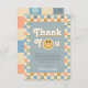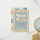 Esta tarjeta de agradecimiento del 1er cumpleaños del chico captura las vibes retro de los 70 con un tema azul lindo y un patrón a cuadros pastel. Totalmente personalizable, incluye espacio para tu mensaje y nombre. Perfecta para un cumpleaños boho "Un Chico Genial".
