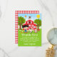 Tarjeta De Agradecimiento Cumpleaños Rojo Granja Niña Pelo Negro