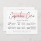 Cupcakes Cupcakes de color rosa moderno con un guión moderno y elegante. Esta guía de instrucciones de cuidado de pastelitos esmerilados incluye las instrucciones más importantes para que sus clientes sepan cómo almacenar y servir magdalenas y pasteles frescos. El perfecto agradecimiento de la panadería y la tarjeta de atención para tus cajitas de quequitos.
