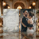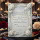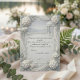 Express your heartfelt gratitude with this romantic silver-gray and slate blue template, featuring an elegant printed faux bas-relief botanical aesthetic.This layout presents a sophisticated visual hierarchy, contrasting charcoal black modern flowing handwritten script against a serene, soft silver-gray background. The composition features a printed faux 3D ornate border encompassing blooming botanical clusters, leaves, and a classical gazebo overlooking rolling hills, delicately accented with pale slate blue draped chiffon motifs. A central picture placeholder is framed by a minimalist continuous black line art heart graphic, drawing the eye directly to the couple's portrait. Please note: This is a flat printed image with a faux sculpted plaster bas-relief effect, not actual raised material.