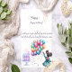 Designed with love, this card features a charming drawing of a little brunette holding a bouquet of colorful balloons, ready to celebrate her big day.