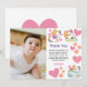 Tarjeta de agradecimiento de cumpleaños de niña bebé con gatito lindo y corazones se puede personalizar con foto de bebé y adecuada para niñas menores de 5 años