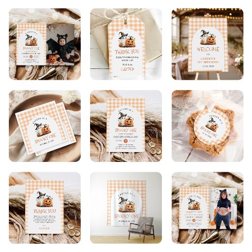 Tarjeta De Agradecimiento Cute Gingham Halloween Ghost 1º cumpleaños