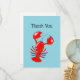 Envíe un toque de gratitud con este adorable diseño de tarjetas de agradecimiento de langosta. Con un alegre bogavante rojo personalizado sobre un fondo azul brillante, esta divertida obra de arte sobre el mar es perfecta para expresar aprecio con un toque alegre. Ideal para los amantes del océano, los animadores de los fiestas de playa, las celebraciones infantiles, los eventos de verano y todo aquel que disfrute de los deportes náuticos o acuáticos. Añade un poco de encanto y personalidad con este bonito diseño de inspiración submarina.