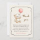 Cute retro Teddy Bear with balloons baby girl shower thank you card.