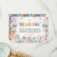 Celebra el cumpleaños de tu pequeña con la encantadora tarjeta de agradecimiento de la fiesta de cumpleaños de los Chicas de animales salvajes Cute Safari, diseñada para forjar una profunda conexión emocional con las familias que planean una celebración alegre y aventurera. Este encantador artículo da vida a la emoción de un safari tropical, lo que lo convierte en una elección ideal para una fiesta de cumpleaños de un chica. El diseño cuenta con una deliciosa variedad de animales salvajes de safari. Estos adorables animales fiestas están listos para unirse a la diversión, cada uno adornado con gorras fiestas festivos que capturan el espíritu alegre de la ocasión. Elementos coincidentes disponibles.