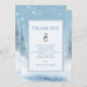 Esta elegante ducha de bebé de oso azul de invierno. Gracias nota, cuenta con un adorable cachorro de oso rodeado por un nevado fondo invernal.