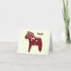 Dala Horse al estilo de los años 50 en rojo en una tarjeta color crema con "tack", sueco para Gracias.
