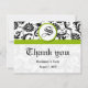 Tarjeta De Agradecimiento Damascado Floral Negro y Blanco con Borde Verde