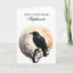 Set the tone for a moody gothic correspondence with this personalized note card. This design features a striking black raven perched before a large watercolor moon rendered in muted sepia and charcoal tones. It is the perfect way to send a thoughtful message or a unique gift for a stationery lover.