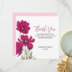 Esta hermosa tarjeta de agradecimiento presenta un impresionante ilustracion acuarela de flores de cosmos de color rosa oscuro y vegetación frondosa, con vibrante caligrafía. Puede personalizar el texto fácilmente y hacerlo más personalizado.
