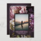 Elegant flat wedding thank you card featuring a dark purple floral theme. The moody color palette is great for a fall wedding. Use the template to add two of your favorite photos.
