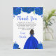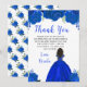 This Quinceanera thank you card features faux glitter royal blue floral flowers and a beautiful princess with dark skin and an elegant dress. This is perfect for a Quinceanera birthday party.