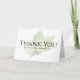 Tarjeta de agradecimiento de desayuno nupcial de hoja verde. Fondo blanco y gran hoja de acuarela con una fuente de escritura.
