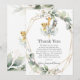 Personalice esta elegante tarjeta de agradecimiento de bautizo/ bautismo de animales del jungla de vegetación neutral en cuanto al género con su propia redacción de manera fácil y rápida. Simplemente haga clic en el botón personalizar para editar los textos, cambiar las fuentes y los colores de las fuentes. Artículos coincidentes disponibles en la tienda. (c) The Happy Cat Studio