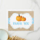 Tarjeta de agradecimiento de arpillera azul de calabaza de otoño. Para personalizar aún más, haga clic en el botón "Personalizar" y use nuestra herramienta de diseño para modificar esta plantilla.