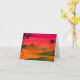 Tarjeta Postal Preciosa Con Arte Japonés Fino Que Representa Un Atardecer Naranja Detrás De Un Diseño De Paisaje Colorido. Esta Tarjeta De Arte Fino En Blanco Es Una Tarjeta Perfecta Para Cualquier Ocasión... Gracias, Pensando En Ti, Recupérate, Hola Etc...