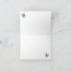 Cuta tarjeta de agradecimiento para usar después de que sus bebés estén bañados de amor. El cielo azul claro y los móviles colgados hacen un bonito diseño frontal. En el interior se encuentra el mismo pájaro azul del diseño delantero.