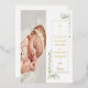 Tarjeta postal de agradecimiento de bautizo con firma de papel de aluminio dorado real. Personalice con su foto y mensaje especial de agradecimiento de bautizo en letra chic en este diseño moderno y elegante. Diseñado por Thisisnotme©
