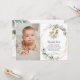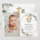 Personalice esta elegante tarjeta de agradecimiento de imagen de bautizo / bautizo de animales de la jungla de vegetación de género neutral con su propia redacción de manera fácil y rápida. Simplemente haga clic en el botón personalizar aún más para editar los textos, cambiar las fuentes y los colores de las fuentes. Artículos coincidentes disponibles en la tienda. (c) The Happy Cat Studio