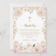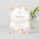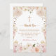Tarjeta de agradecimiento de bautizo floral boho rosa elegante. Un marco floral boho rosa de acuarela moderna con una cruz. Celebre esta ocasión alegre con nuestra tarjeta de agradecimiento personalizada que marcará el tono para una reunión memorable y significativa.