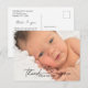 Envía un agradecimiento especial a familiares y amigos que asistieron al bautizo de tu hijo recién nacido. Muestra tu aprecio por su presencia, los regalos y todo el amor y apoyo que brindan a tu familia. Hazles saber lo importantes que son en la vida de tu recién nacido. Personaliza el agradecimiento con tus propias palabras en esta tarjeta postal minimalista y elegante.