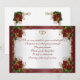 Tarjeta de agradecimiento de boda "Boda de invierno" Invitación de tema festivo de boda de invierno con raso rojo, ornamentos elegantes dorados y burdeos, cintas de raso blancas y acentos dorados