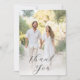 Celebra tu amor con esta tarjeta de agradecimiento de boda boho rústica con dos fotos para la ducha de novia. Estas tarjetas son perfectas para bodas, duchas de novia y cualquier ocasión especial, con un diseño minimalista, caligrafía elegante y fotos atemporales en blanco y negro. Simple, moderna y económica, ¡expresa tu gratitud con calidez y estilo!