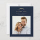 Expresa tu gratitud con las cautivadoras "Tarjetas de agradecimiento de boda celestial azul", situadas en un fondo azul profundo y encantador. Los elementos celestiales, incluyendo la luna creciente y una foto personalizable de la pareja, toman el centro del escenario, simbolizando gratitud y proyectando un resplandor celestial contra el lienzo sereno que refleja la magia de tu día especial.