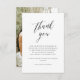 Tarjetas de agradecimiento de boda sencillas con una foto personalizada. Este diseño atemporal presenta tipografía serif clásica, letras de caligrafía elegantes y un diseño de tipografía moderno. Hecho para coincidir con nuestras invitaciones de "Boda de compromiso con caligrafía simple". Ver la colección vinculada en esta página para artículos relacionados o visite nuestra tienda para más diseños de boda.