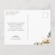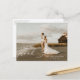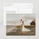 Elegante caligrafía de "Gracias" en blanco, tarjeta postal de agradecimiento de foto de boda. La parte trasera de la tarjeta presenta un arreglo floral de acuarela en beige champán neutral.
