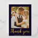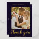 Tarjeta de agradecimiento de boda moderna con lámina de oro y 2 fotos. Tarjeta de agradecimiento de boda con lámina de oro. Tarjeta de agradecimiento con lámina de oro. Esta tarjeta de agradecimiento de boda con lámina de oro presenta escritura de caligrafía con Personaliza con tus nombres y fecha de boda.