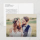 Una alternativa romántica y nítida a la paleta de colores dorados, esta tarjeta postal de agradecimiento con foto a sangre features "amor y agradecimiento" en letra cursiva blanca que combina perfectamente con cualquier paleta de colores de fotos de boda. Los nombres de la pareja y la fecha de la boda personalizables se muestran debajo en tipografía blanca limpia, manteniendo el diseño fresco y atemporal. Ideal para parejas con estética de boda ligera y aireada, bohemia o al aire libre.