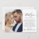 Elegante Chic Moderno Boho Tarjeta de agradecimiento de boda con caligrafía Script 2 Fotos. Plantilla de agradecimiento de boda elegante que presenta una foto vertical completa en la parte frontal con el texto "Gracias" en una tipografía de letra manuscrita caprichosa con cola de florituras en blanco superpuesta en la imagen y un reverso con una (1) foto y mensaje de agradecimiento prediseñado. Tarjeta de 2 caras con 2 fotos. Fácil de personalizar su nombre y mensaje de agradecimiento. Si prefiere escribir a mano su nota, simplemente elimine el texto de muestra para hacer más espacio. ¡Si necesita ayuda o artículo coincidente, por favor contácteme!