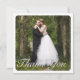 Cuenta con un marco grande y hermoso en la parte frontal para tu foto de boda con las palabras Gracias en blanco. En la parte posterior, puedes personalizar tu mensaje de agradecimiento. Hermoso y elegante