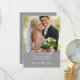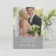 Tarjeta de agradecimiento de boda moderna, simple, gris y blanca con foto de boda sobre fondo gris sólido, fuente de escritura elegante para las palabras "gracias". Personalice con el texto de agradecimiento de su boda y la foto de la boda. Para otros colores, por favor contacte al propietario de la tienda