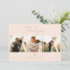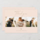 Tarjeta de agradecimiento de boda con 3 fotos, letra boho moderna y color rosa polvoriento. Características: 3 espacios para fotos cuadradas en la parte frontal, gráfico de color taupe que dice "Gracias", acento de corazón, líneas de texto de plantilla para sus nombres y mensaje personalizado.