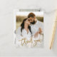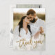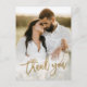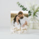 Esta moderna tarjeta de agradecimiento de boda con 2 fotos presenta agradecimiento con guión dorado, mensaje personal y una foto vertical en la parte delantera. La parte trasera incluye una segunda foto que es una foto horizontal de sangrado completo. Haga clic en editar para personalizar este diseño.