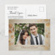 Tarjeta de agradecimiento de boda con hoja de oro elegante con postal de foto.