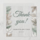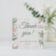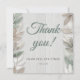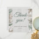 Una tarjeta de agradecimiento de boda rústica limpia y moderna que presenta hojas suaves de tonos neutros en acuarela a lo largo de los bordes laterales. La suave mezcla de tonos de salvia, taupe y marfil crea un aspecto natural y calmante que coincide perfectamente con el diseño de la invitación.
