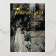 Tarjeta de agradecimiento de boda con lámina dorada. Esta tarjeta de agradecimiento de boda con lámina dorada presenta letra de caligrafía con Personaliza con tus nombres y fecha de boda.