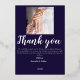 Tarjeta de agradecimiento de boda con lámina dorada azul marino moderna con guión. Tarjeta de agradecimiento de boda con lámina dorada tarjeta de agradecimiento de boda con lámina dorada. Esta tarjeta de agradecimiento de boda con lámina dorada presenta caligrafía con Personaliza con tus nombres y fecha de boda.