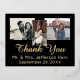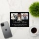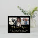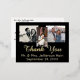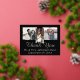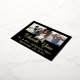 Tarjeta postal de agradecimiento de boda moderna con estilo de letra manuscrita elegante y collage de fotos múltiples con lámina de oro real. Diseñada para agregar tres de sus fotos favoritas y agregar fácilmente sus nombres y fecha de boda para un diseño verdaderamente personalizado. Fuente de letra script elegante y fondo negro de moda. Para las fiestas: bendiciones de Feliz Navidad.